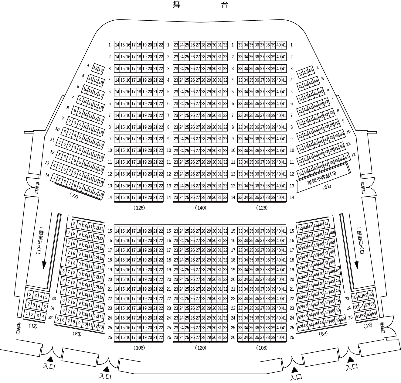 ※ 大ホールの舞台用具、音響用具、照明器具、ピアノ使用料は 「設備・備品について 」ページをご確認ください。